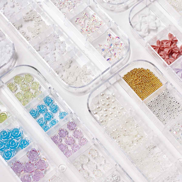Upgrade your manicure with this luxurious 12-Grid Nail Art Decoration Box, filled with pearls, Beads, and 3D butterfly charms. Perfect for DIY nails, salons, bridal nails, and special occasion designs. Each charm is individually stored in a secure grid case — no mixing, no mess!