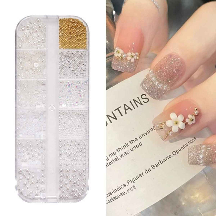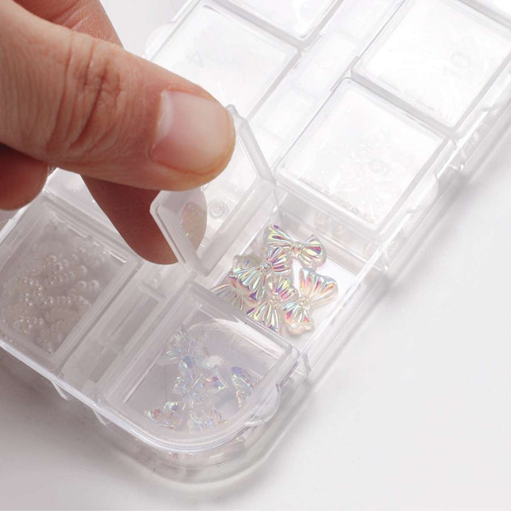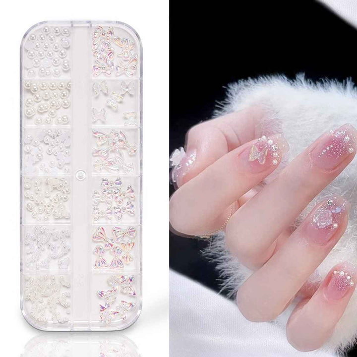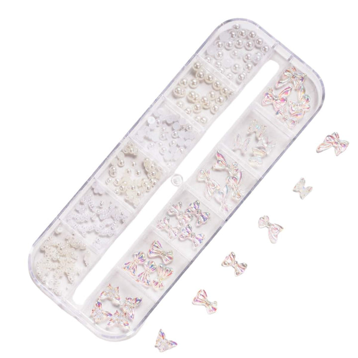 12-Grid Pearl, Bow & Butterfly Nail Art Decoration Box – 3D Beads & Charms for DIY Nails