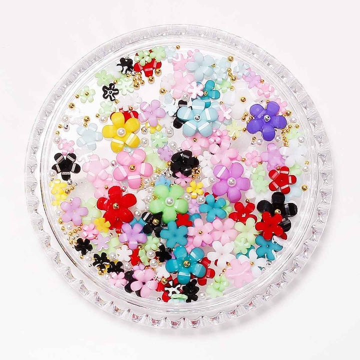 Add a sweet and playful touch to your nails with our 3D Colorful Flower Nail Art Charms Wheel. Featuring a beautiful mix of daisy and blossom designs in vibrant colors, these mini charms are perfect for creating fun, trendy nail looks. Ideal for both salon and home use, these flower charms easily elevate any manicure style — from soft pastel nails to bright, creative summer sets.