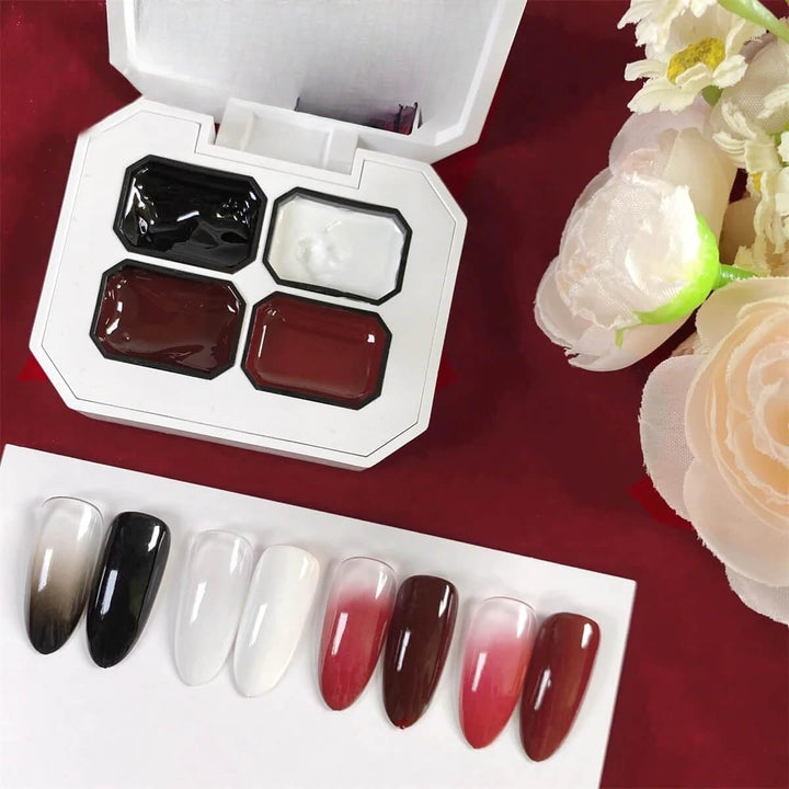 - 1 x 4-Color Ombre Nail Painting Gel Palette (Black, White, Red, Dark Red)