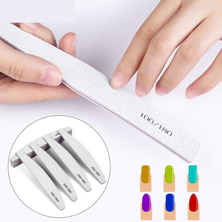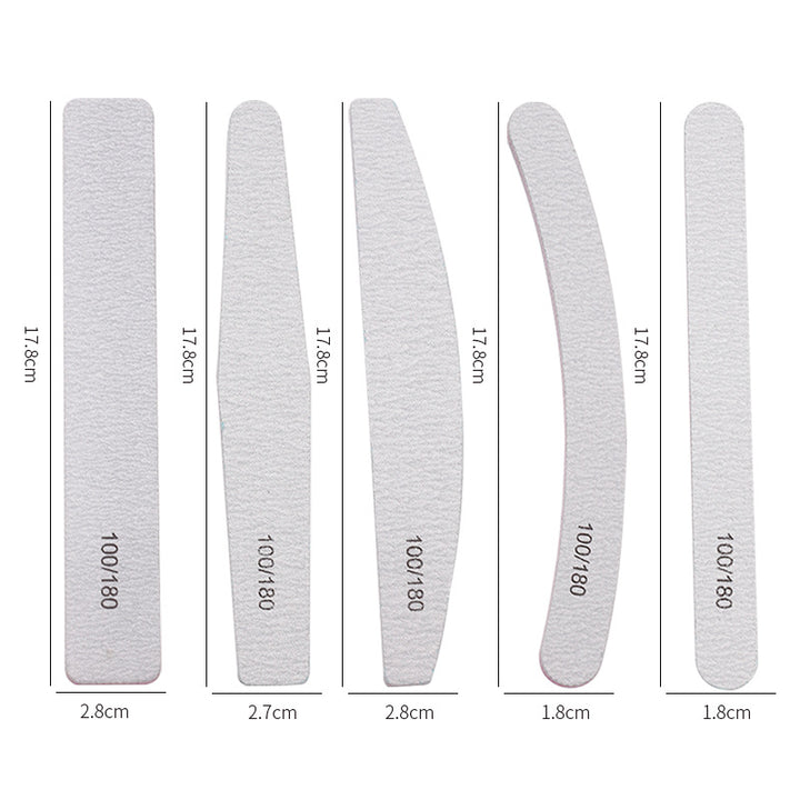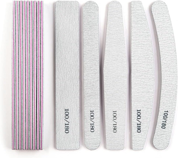 Elevate your nail care routine with this 5 Pcs Professional Nail Files Set. Featuring 100/180 grit double-sided surfaces and five versatile shapes – Banana, Straight, Rhombus, Square and Half Moon, these files are perfect for shaping, smoothing, and refining natural nails, acrylics, gel nails, and extensions. Made from durable, high-quality emery board material, each file is reusable and easy to clean, ensuring long-lasting performance. Ideal for both professional nail technicians and home use, the ergonomic design provides a comfortable grip for precise filing every time. Achieve salon-quality results with style and ease.