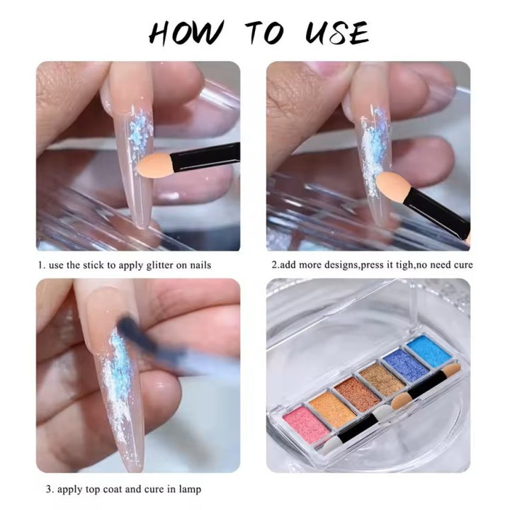 - Versatile and easy to use, these solid nail glitter powders can be applied with a sponge applicator or brush for customized intensity. Experiment with periwinkle nail polish for unique color combinations.