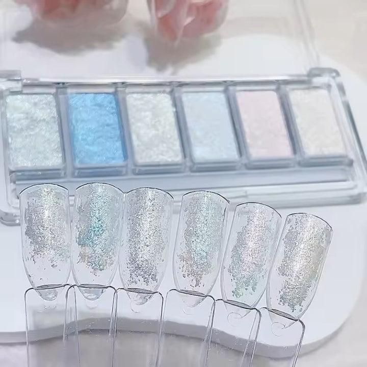 6 Colors Aurora Reflective Solid Pigment Bling Mud Soft creamy Nail Glitter High Quality