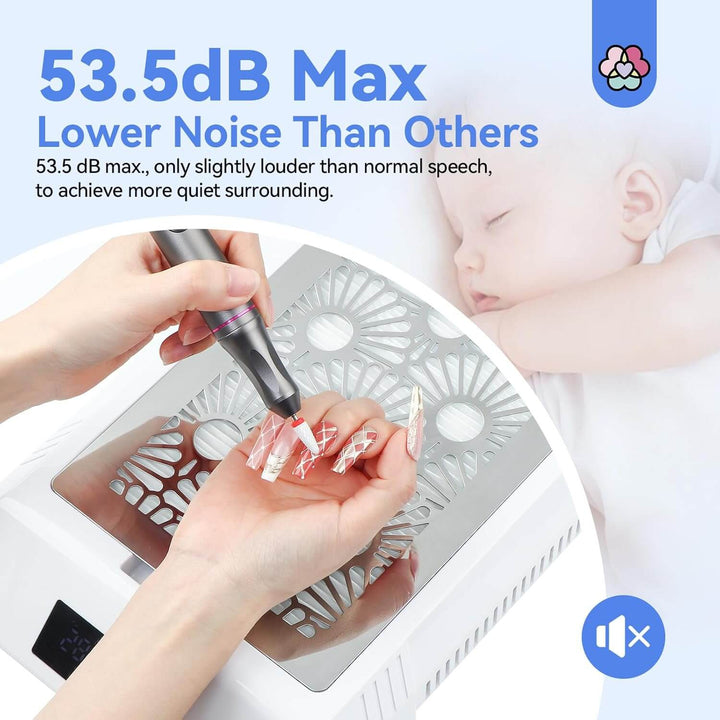 - Efficient dust collection for acrylic, gel, and natural nails