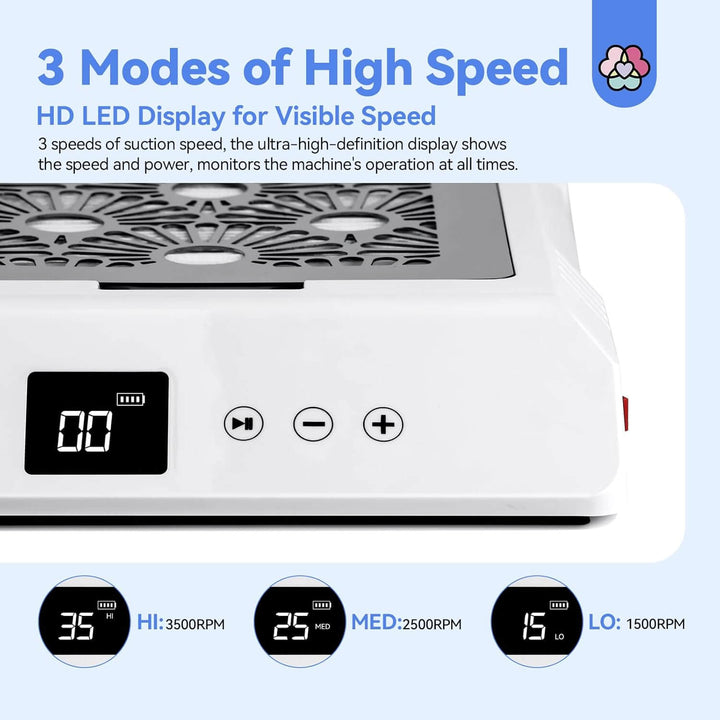 - 1 x 85W Rechargeable Brushless Nail Dust Collector