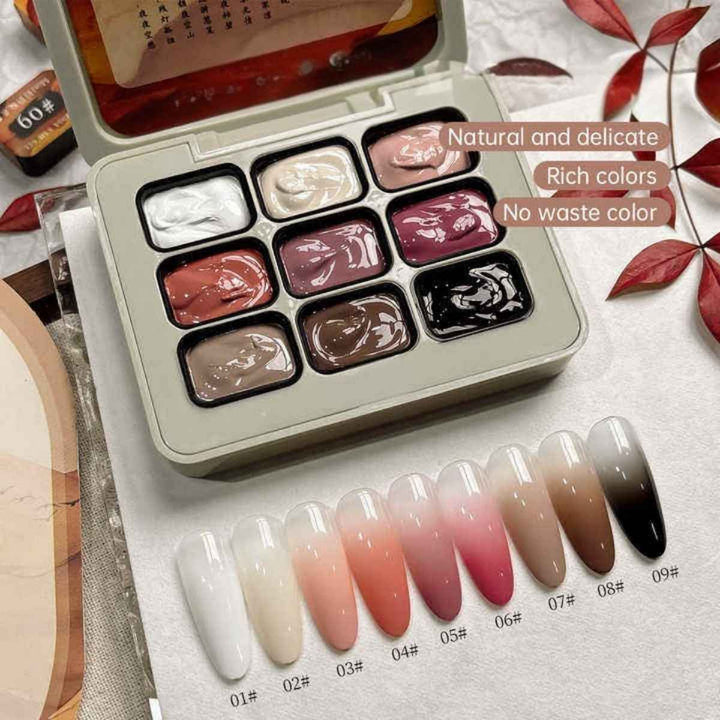 - 1 × 9-Color Gradient Nail Painting Gel Palette