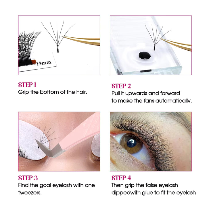 The 5D W shape lashes are pre-made, making the application process quicker and more efficient for lash technicians. This reduces the need for complex layering, making it ideal for busy salons or clients who want a faster service.
