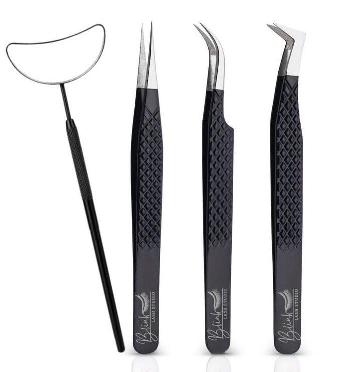 - All-in-One Set: Our package includes 4 eyelash extension tweezers: Straight Tip Tweezer, Curved Tweezer, 45 Degree Tweezer, 90 Degree Tweezer, and Volume Lash Tweezer. Perfect for creating big fans, grafting, and placing extensions on natural lashes.