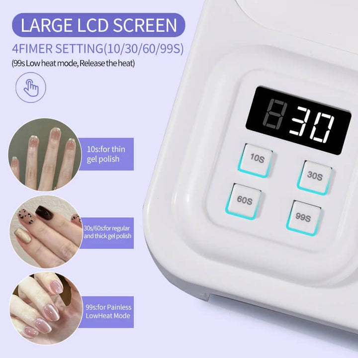 - Safe low-heat mode ideal for sensitive nails and comfort use