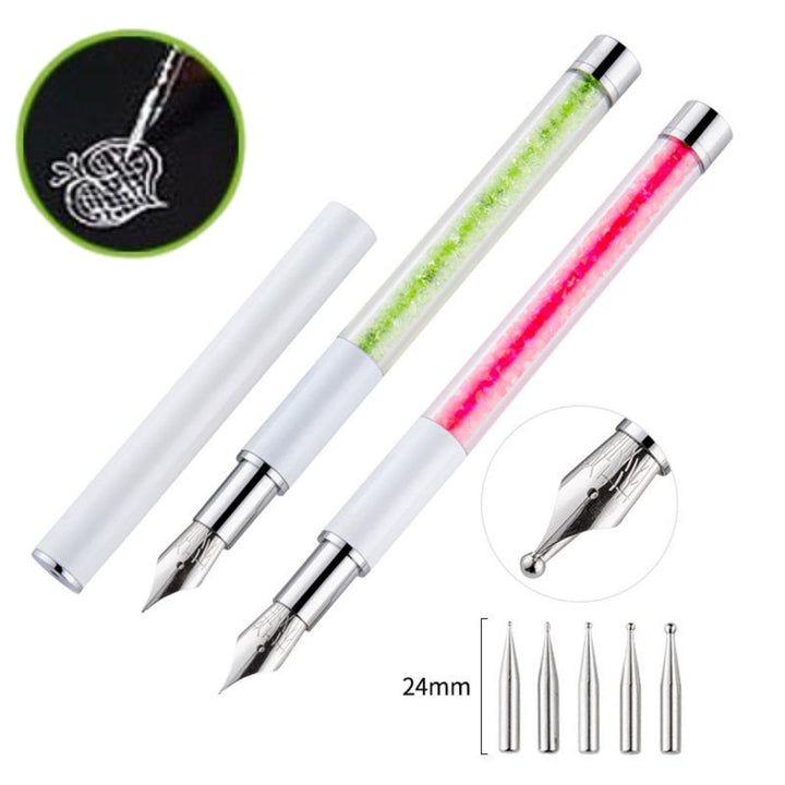 Create stunning nail designs with this Crystal Nail Art Pen, featuring 5 interchangeable metal dotting tips for precise and creative detailing. Its elegant rhinestone crystal handle provides a comfortable grip, making it ideal for both professionals and beginners. Perfect for drawing lines, dots, flowers, and other artistic nail patterns — this pen turns every manicure into a masterpiece.
