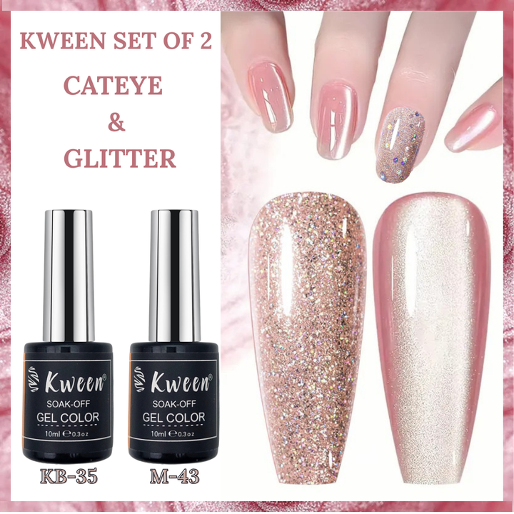 KWEEN 2Pcs/Set 10ml Nude Pink Cat Magnetic Gel Polish with Glitter Gel Polish