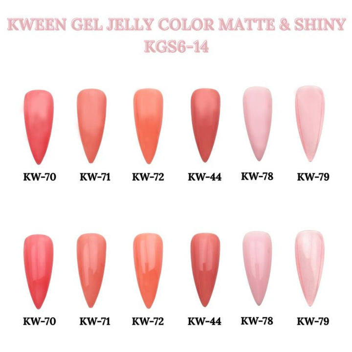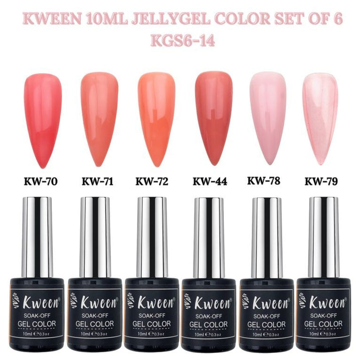 KWEEN Jelly Nude Pink Peach Soak Off UV Gel Nail Polish Set of 6