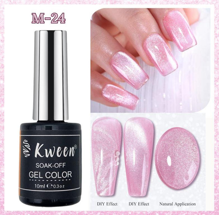 KWEEN Jelly Pink Cat Eyes Gel Polish Galaxy Soak off Cat Eye Gel Polish Magnetic for Nail Art Manicure Salon DIY at Home
