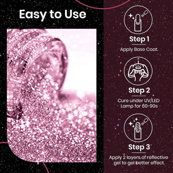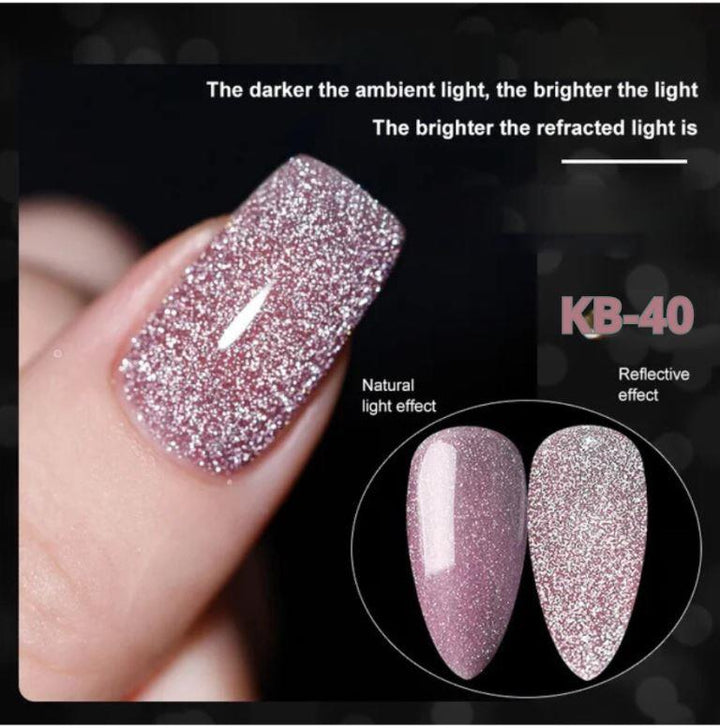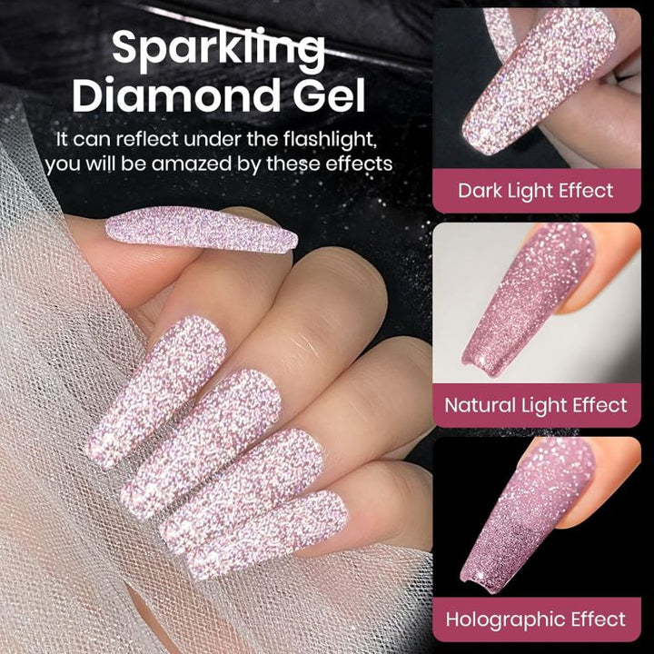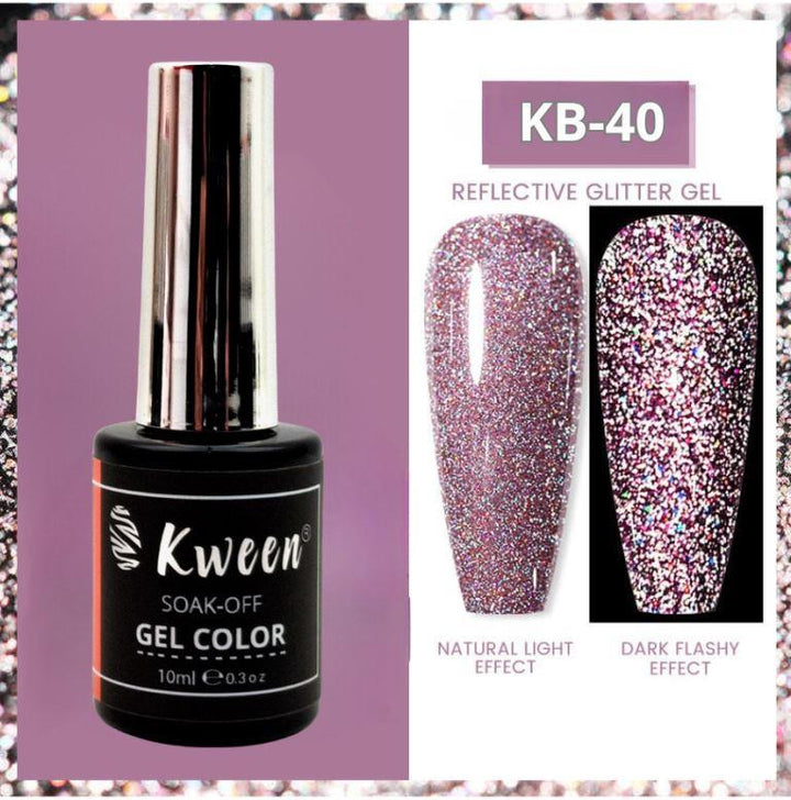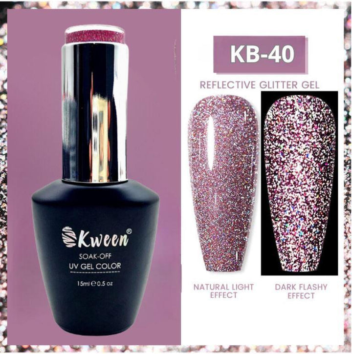KWEEN Rose Pink Glitter Gel Nail Polish, Reflective Glitter Gel Polish, Diamond Shimmer Gel Soak Off UV LED Gel Nail Art Manicure Salon