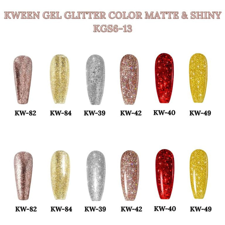 KWEEN Shiny Glitter Soak Off UV Gel Nail Polish Set of 6