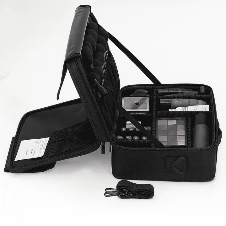 This Large 3-Layer Makeup & Nail Art Organizer Bag in elegant black is designed for both professionals and daily beauty lovers. It includes adjustable dividers, spacious compartments, and secure pockets to store makeup, nail tools, brushes, palettes, and skincare essentials. Made with durable waterproof fabric and thick protective padding, it keeps your items safe whether at home, in the salon, or while traveling. The black color adds a sleek, modern, and professional look.