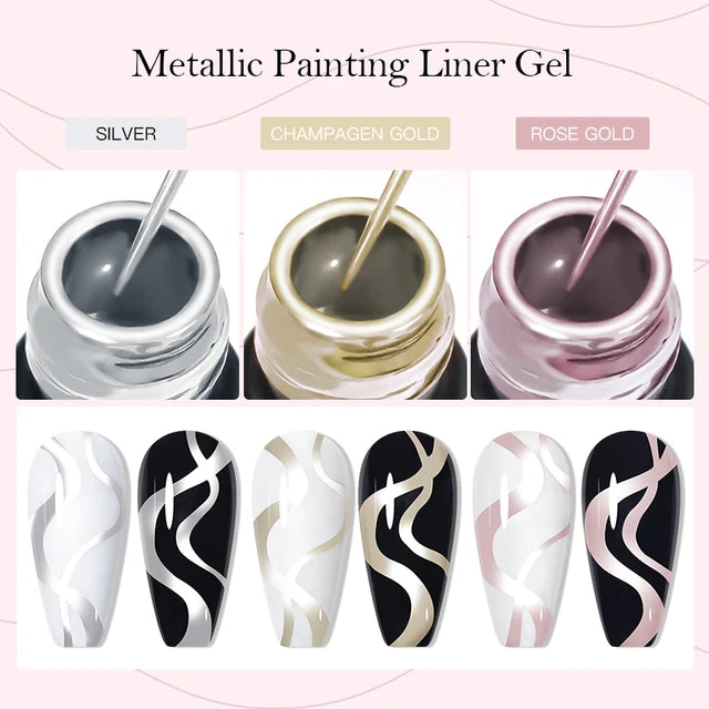 LILYCUTE Metal Chrome Effect Platinum Gel Liner Nail Art Soak Off UV LED Mirror Metallic Liner Gel Polish