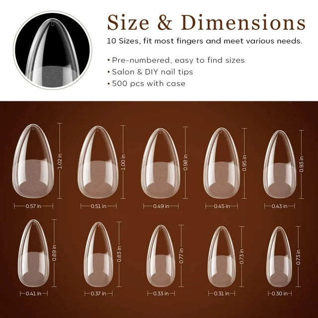 - 7. 10 Different Sizes: 500pcs soft gel nails have 11 different sizes, 0-9, to meet the needs of fingers of different sizes. The nail tip has size numbers at the top, making picking the tip that fits your nails easy. It is neatly placed in the box for easy access, neat and beautiful.