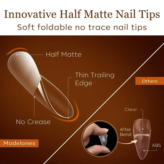 - Brand New high-quality Materials: Soft gel nail tips are made of high-quality ABS material, strong, not easy to deform break, have no odor, and have a certain thickness and length, they can be used with nail polish, dip powder, acrylic acrylic powder, easy to create salon nail effect.