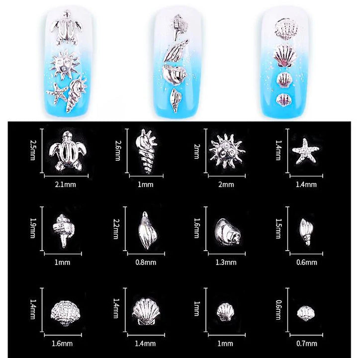 Metal 3D Ocean Nail Studs Star Starfish Shell 12 Grid Mixed Sizes Nail Art Decor