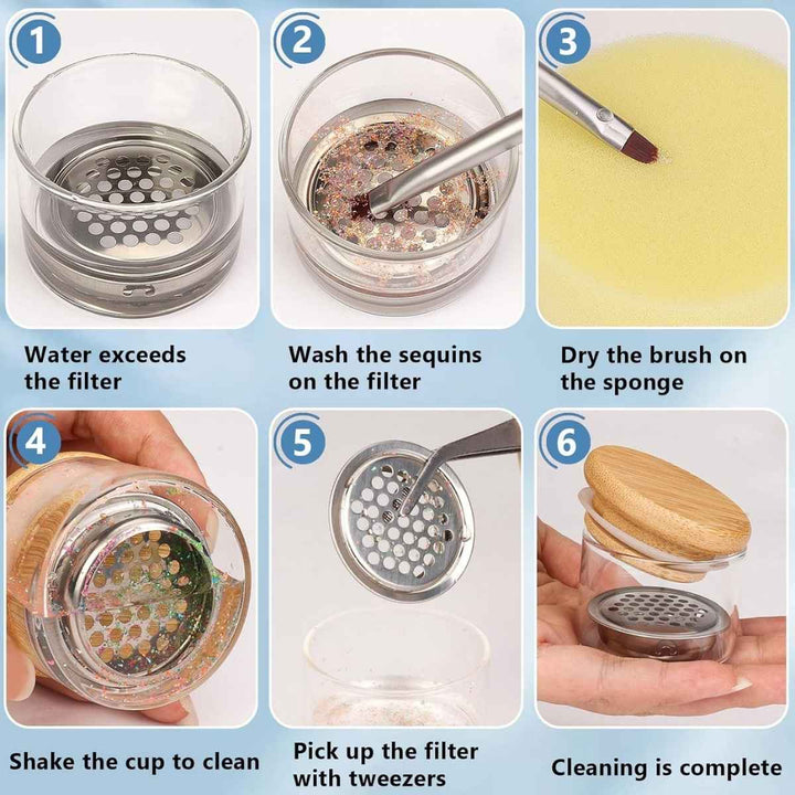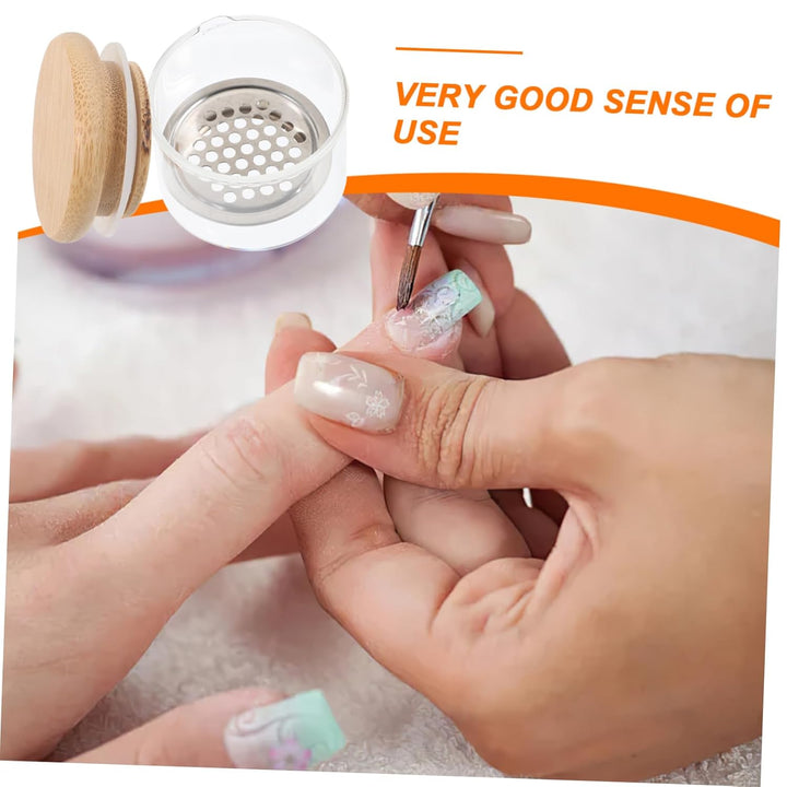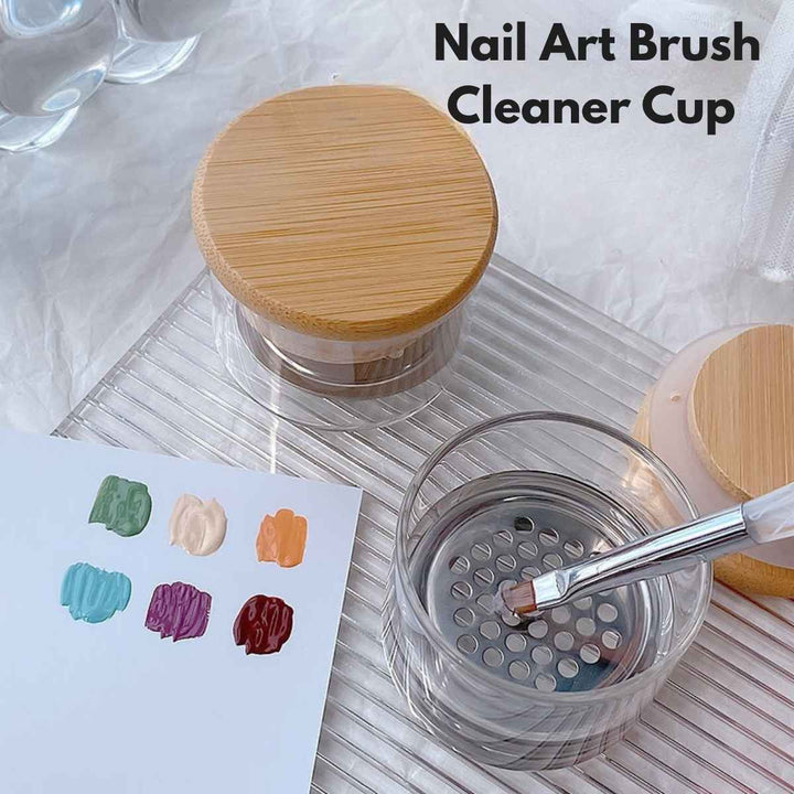 Keep your nail art brushes clean and protected with this Nail Art Brush Cleaner Cup. Designed with a stainless steel filter to separate residue and a bamboo lid to prevent spills, it’s perfect for professional salons or home nail artists. The transparent glass design lets you monitor cleanliness, while the eco-friendly materials ensure safe and sustainable use.