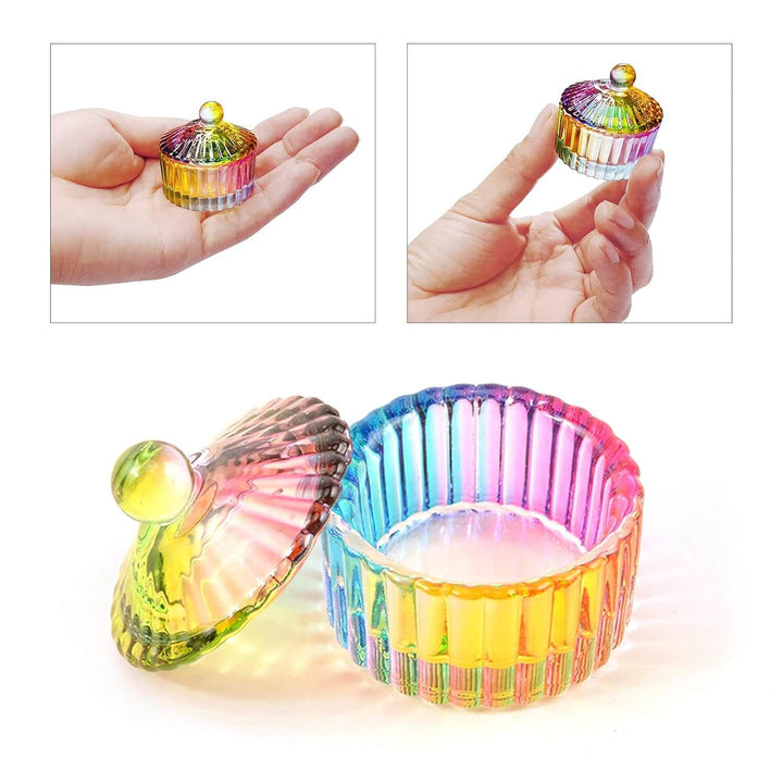 Bring color and elegance to your nail setup with Rainbow Crystal Glass Dappen Dish - available in two stunning shapes: square and round.