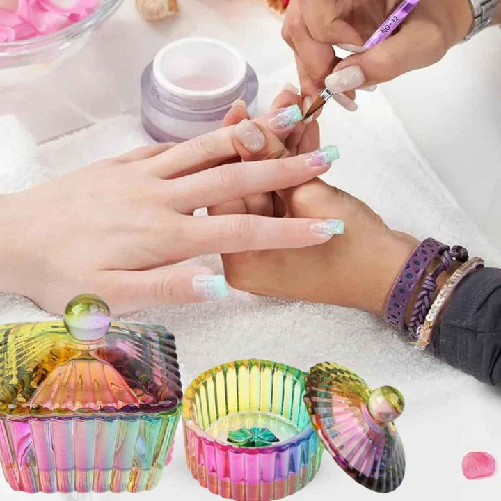 Made from premium iridescent glass, each dish sparkles with rainbow reflections that make every manicure feel magical.