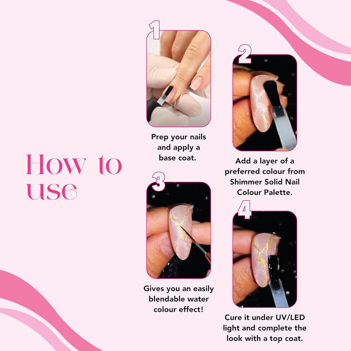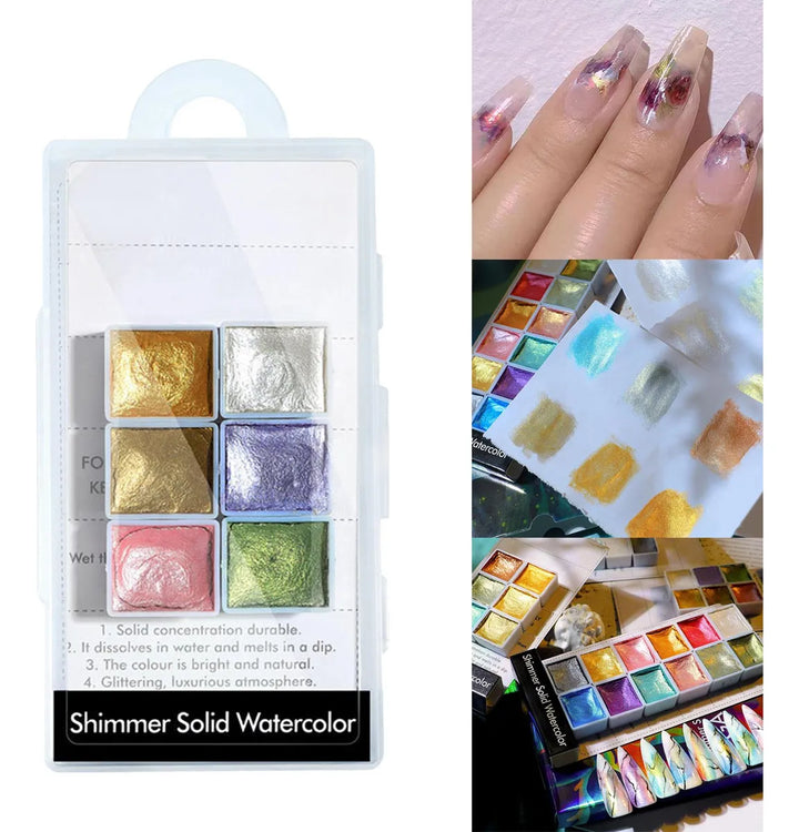 - Just add a touch of water to reactivate your shimmer watercolor paints, no need to use nail lamp to cure.