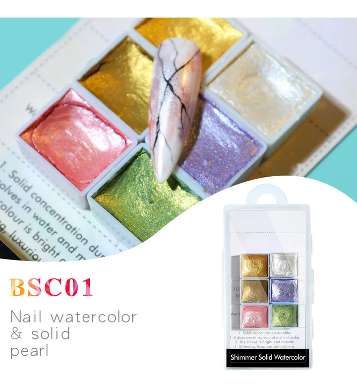 The Shimmery Pearl Nail Art Watercolor Paint Set brings a soft, shiny glow to your nail designs. With 6 metallic pearl colors, it’s perfect for adding elegant and creative effects to any manicure. The smooth, blendable texture makes it easy to mix shades and create unique looks — great for both beginners and professionals.