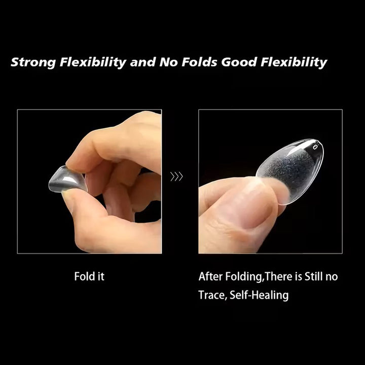 - Almond Nails with No Trace: The fake nails is gelly soft tips and will make no trace even bend, bright clear you can more easily press, trim, paint flat false nails to make your dream nails shape,allow your nail extension.Real DIY manicure gel tips.