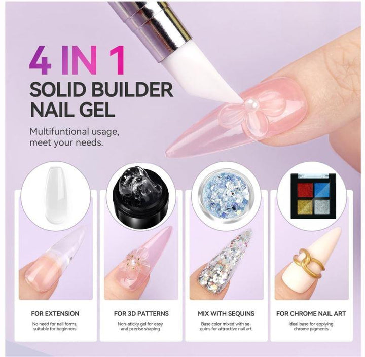 - Multiple usages solid builder gel for nails: The builder nail gel feels like plasticine which is simple to manipulate and knead to any shapes or other decoration. You can use the nail builder gel to make nail extensions, nail carving, 3D nail art decorations, nail glue gel for nail tips, nail strengthener gel, and so on. It's a money-saving builder gel for nails to meet your multiple demands to DIY your nails.