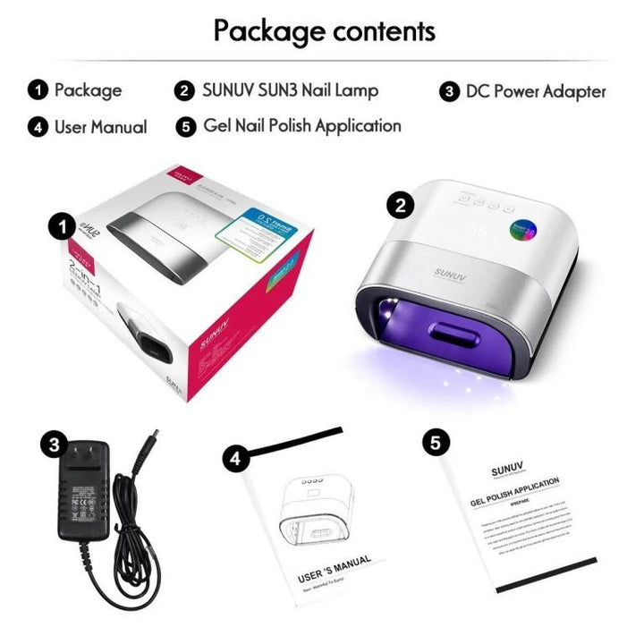 - IDEAL FOR HOME AND SALON USE: SUN3 nail dryer's 39-piece durable 50000hrs lifetime LED beads are evenly distributed inside. It would help to uniformly cure gel nail polish. Fashion appearance and wide enough zone make it easier to cure 5 fingernails or toenails at the same time.