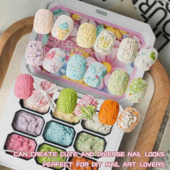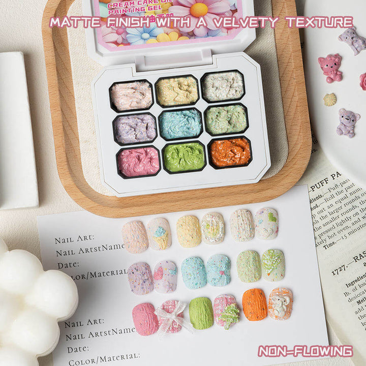VINIMAY 9-Color Cream Cake Oil Painting Gel Palette – Textured 3D Nail Art Set