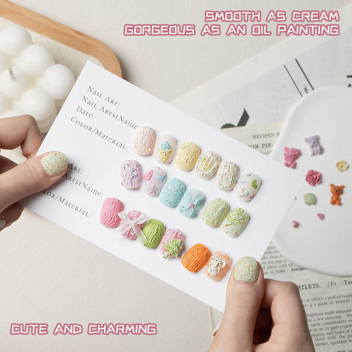 Create stunning textured nail art with the VINIMAY 9-Color Cream Cake Oil Painting Gel Palette. Each shade offers a smooth, buttery texture that allows for effortless blending, layering, and 3D nail effects. Perfect for professional nail artists or creative beginners, this palette delivers salon-quality results with vibrant pigmentation and long-lasting wear.